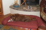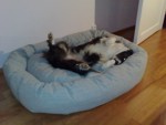 bed, he soon decided it was ok. His old bed felt just like laying on the hard tile, but the new one is so comfortable that his big (human) brothers have been in it, too. Even though it takes up less room than his old rectangle bed, it’s plenty big enough and much more comfortable. Dutch is quite the power-napper and gives his new large donut Mammoth bed two paws up!