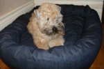 got his bed, and he completely slept all night. He snuck off to the bedroom and cuddled down in his new bed! And it took a lot of prodding to get him out of the bed this morning! He